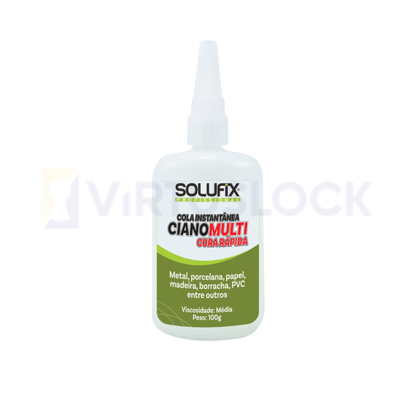 Cola Ciano Solufix Cianomulti, monocomponente multiuso a base de cianoacrilato, com viscosidade média (80-120 CPS). Desenvolvido especialmente para uso nos setores da construção, indústria e setor moveleiro, ideal também para uso no artesanato e pequenos reparos do dia a dia.