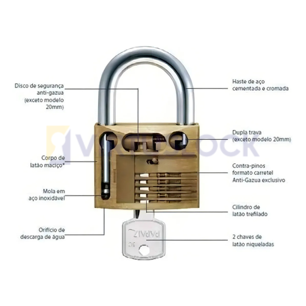 CADEADO PAPAIZ CR20 – LATÃO MACIÇO COM 2 CHAVES