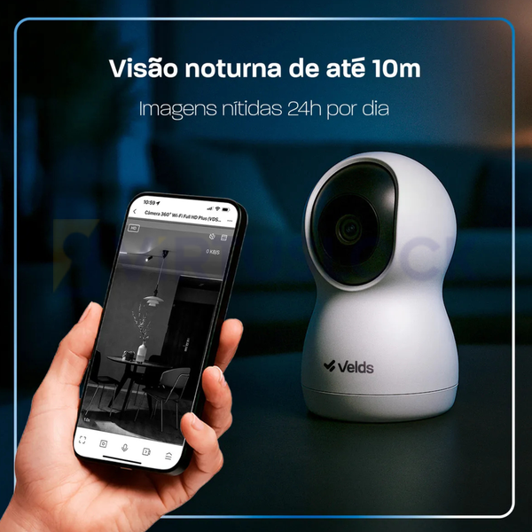 Compacta, potente e intuitiva, a Câmera Inteligente Interna 360° Velds transforma o jeito de cuidar da sua casa, escritório ou negócio com máxima precisão, dia e noite.