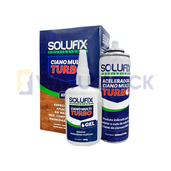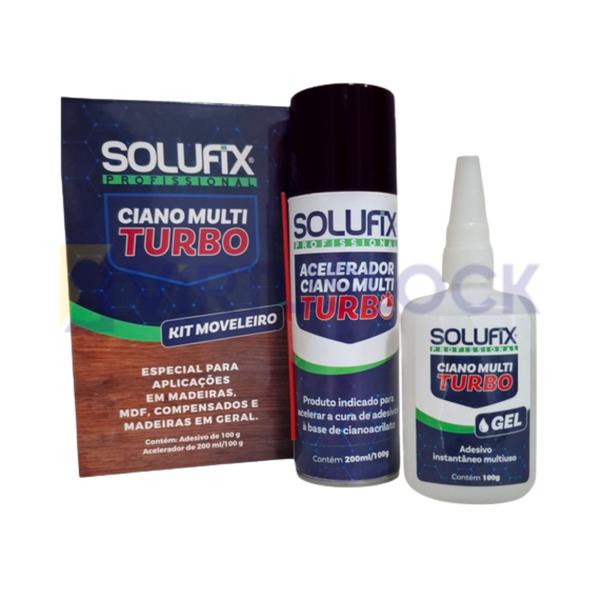 O Kit Ciano Multi Turbo Solufix é a solução completa para colagens rápidas, resistentes e de alta performance. Composto por cola cianoacrilato 100g e acelerador, garante uma união imediata e eficaz em diversos tipos de materiais, sendo ideal para uso profissional e doméstico.