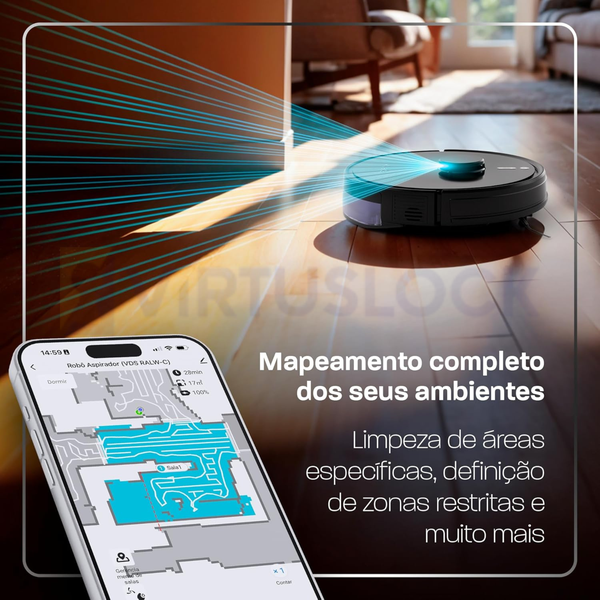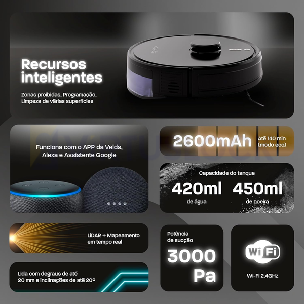 Robô Aspirador de Pó Velds 3 em 1 – Varre Aspira e Passa Pano com Mapeamento via App